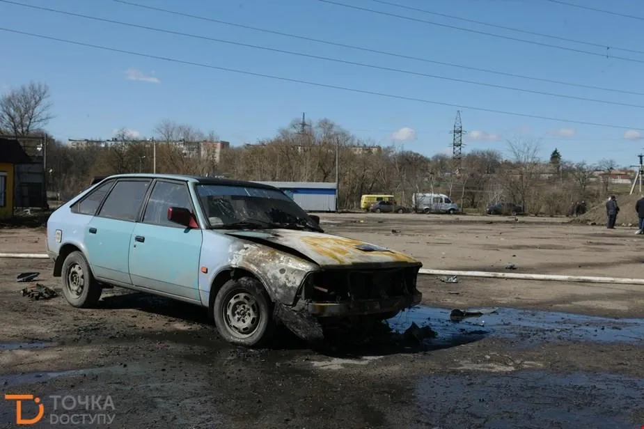На фото, які з'явилися вранці 28 березня видно, що автостоянка перетворилася на влике згарище. Від автомобілів залишилася лише купа обгорілого металобрухту.