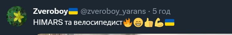Чоловік на велосипеді раптово виїхав на дорогу, де стояв РСЗВ HIMARS, проте анітрохи не здивувався, натомість поїхав далі, ніби нічого не сталося. За мить почалися пуски ракет, проте і це велосипедиста не налякало – він тільки на мить втиснув голову у плечі і продовжив свій шлях.