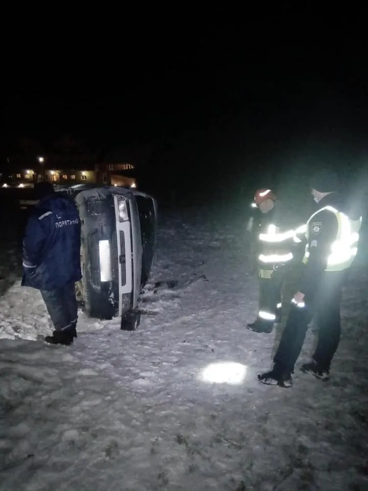 - Аварія сталась о 18:50. Автівка з'їхала в кювет, ймовірно, через слизьку дорогу. Наразі поліцейські з'ясовують, що ж стало причиною аварії.