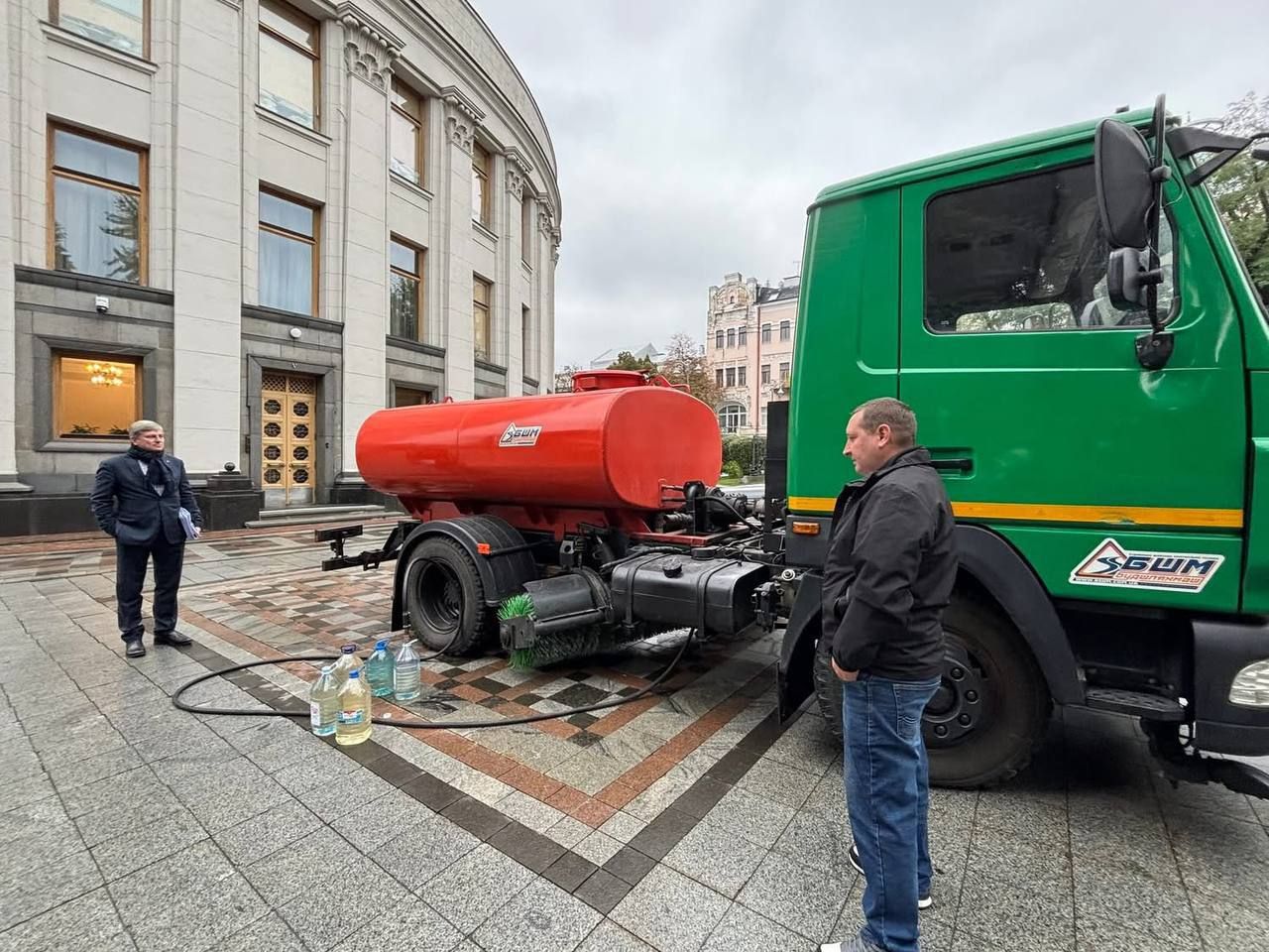Для забезпечення базових потреб до парламенту доставили технічну воду спеціальним автомобілем.