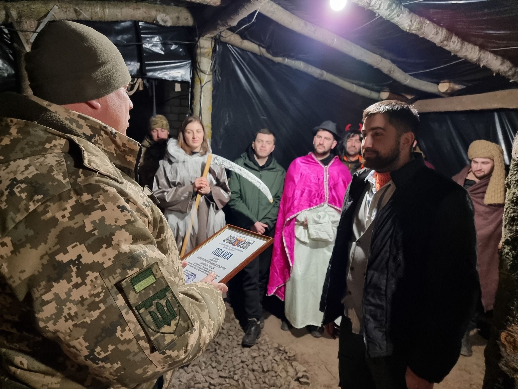 Після коляди командир бригади подякував нам та відзначив, що у багатьох людей, навіть з посадами та званнями, часто не вистачає сміливості приїхати на передову. А ми змогли. І ще нам вручили подяку на згадку про цю поїздку, пригостили чаєм та кавою й ми зібралися у дорогу до наступного місця ночівлі. Дорога ще була далекою.