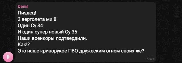 - Зараз мережею шириться інформація про падіння ще одного винищувача – Су-35. Пропагандисти намагаються приховати цей факт, проте російські "воєнкори" вже підтвердили у соцмережах падіння ще одного літака.