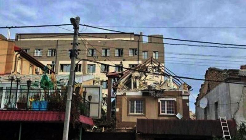 Внаслідок удару постраждала також будівля, розташована неподалік готелю. Фотографії руйнувань появилися у мережі.