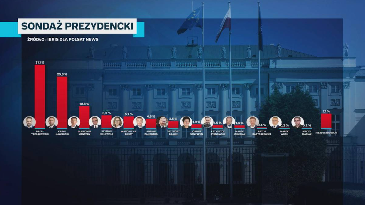 У 2025 році в Польщі на посаду президента балотуються 13 кандидатів, що є рекордною кількістю в історії країни. Раніше найбільша кількість кандидатів була зафіксована в 1995 році, коли в перегонах брали участь 11 кандидатів. Згідно з останнім опитуванням IBRiS для Polsat News станом на 16 травня, лідером президентських перегонів є Рафал Тшасковський від "Громадянської платформи" з підтримкою 31,1% виборців.