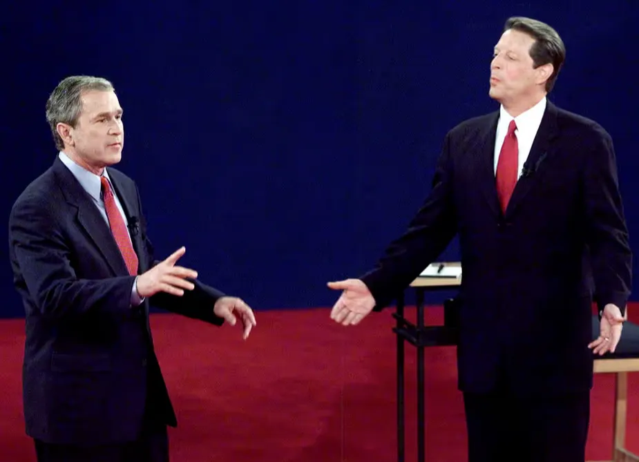 Віцепрезидент від Демократичної партії Ел Гор лідирував в опитуваннях, але голосно зітхнув, коли виступив його суперник, республіканець Джордж Буш.