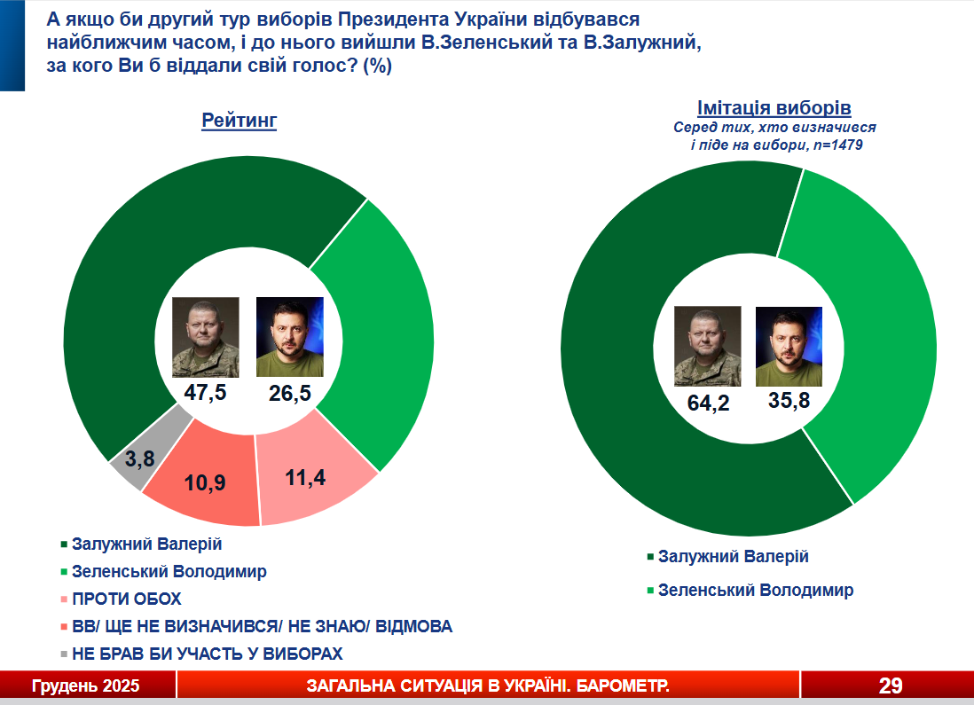 Зеленський програє Залужному у другому турі / Фото SOCIS