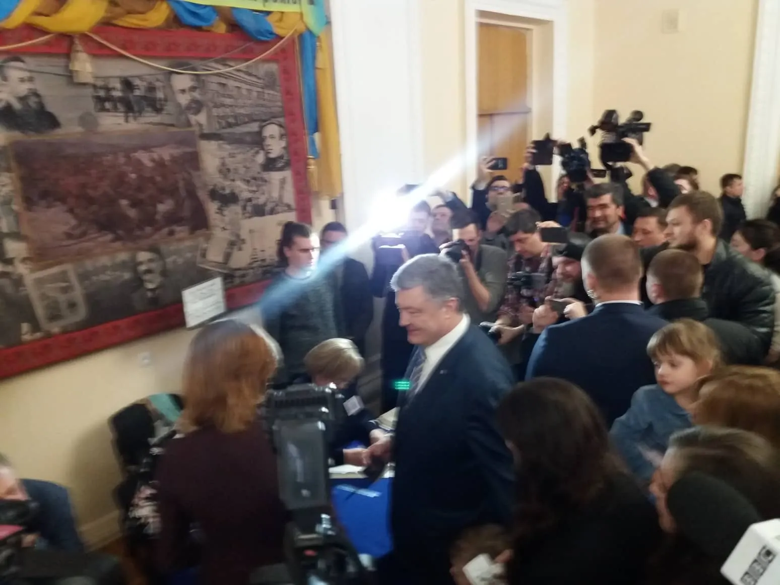 Близько 12:20 проголосував чинний президент України, який хоче переобратися на другий строк Петро Порошенко.