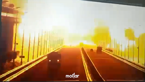 - На відео з вибухом, на деяких кадрах можна розгледіти, що вибухів лише на автодорозі було 2, а потім ще 1 – на залізничному полотні. На це вказує біла смуга, яка з'явилась до вибуху, тобто, ймовірно, через ракетний удар або підрив знизу. А вантажівка, яка, за офіційною інформацією, була причиною руйнування мосту, навіть не перебувала в епіцентрі вибуху, хоч і потрапила пізніше під нього.