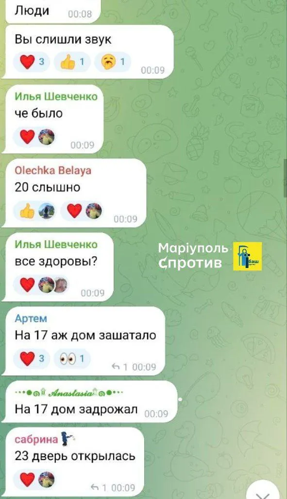 Реакція жителів Маріуполя на звук вибуху в ніч на 2 червня / Фото з місцевого телеграм-каналу