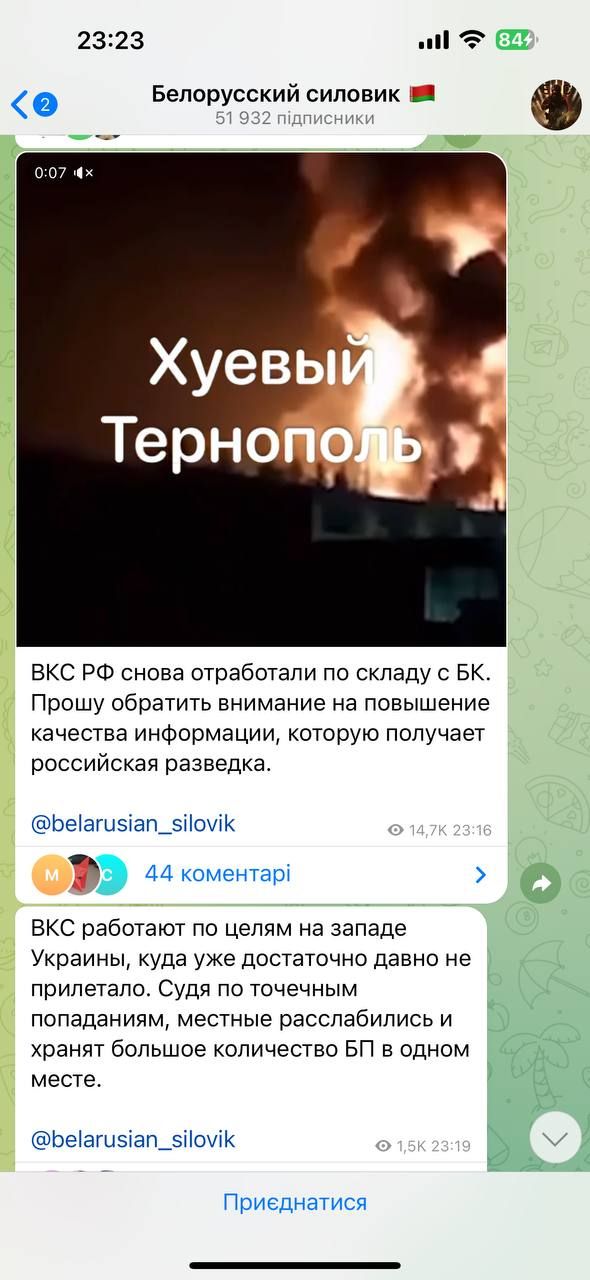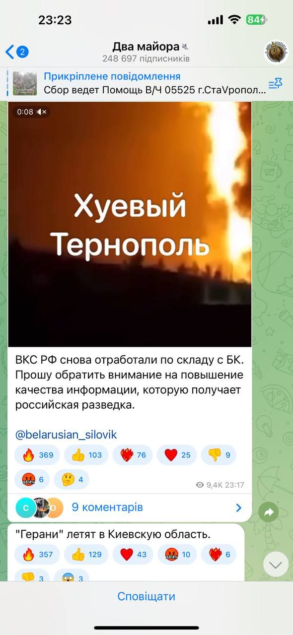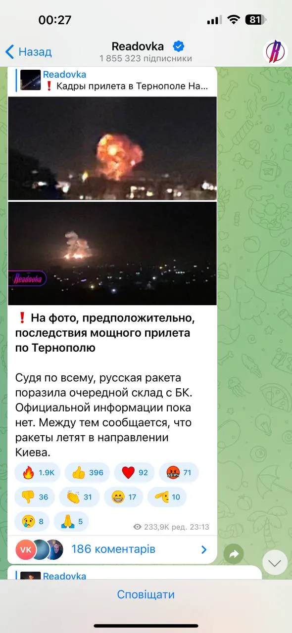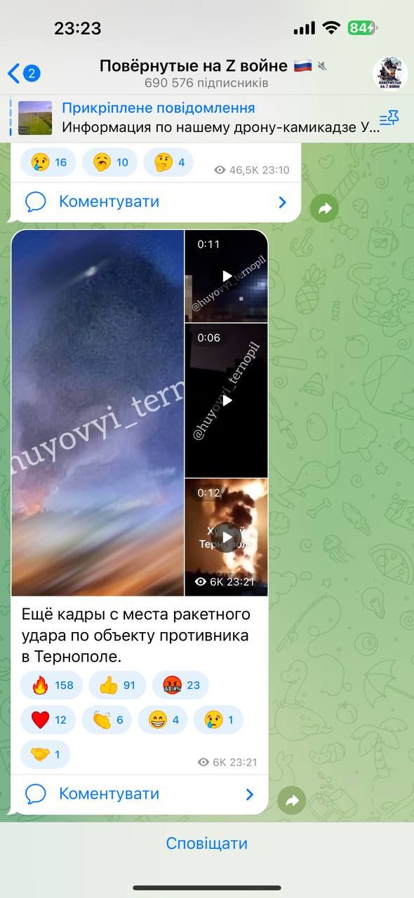 У соцмережах пропагандисти почали публікувати відео з нібито прильотів по Тернополю.