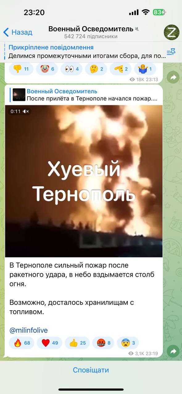 Крім того, загарбники видають старе фото вибухів у Сирії за обстріл Тернополя. Маразм не має меж.