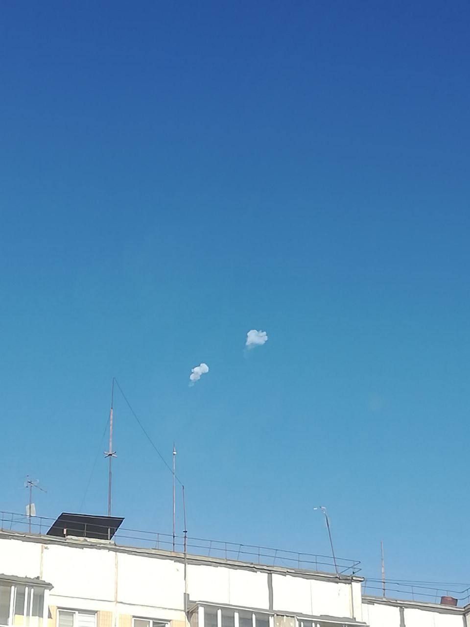 У місцевих телеграм каналах люди публікують фото, де у небі видно сліди після роботи протиповітряної оборони.