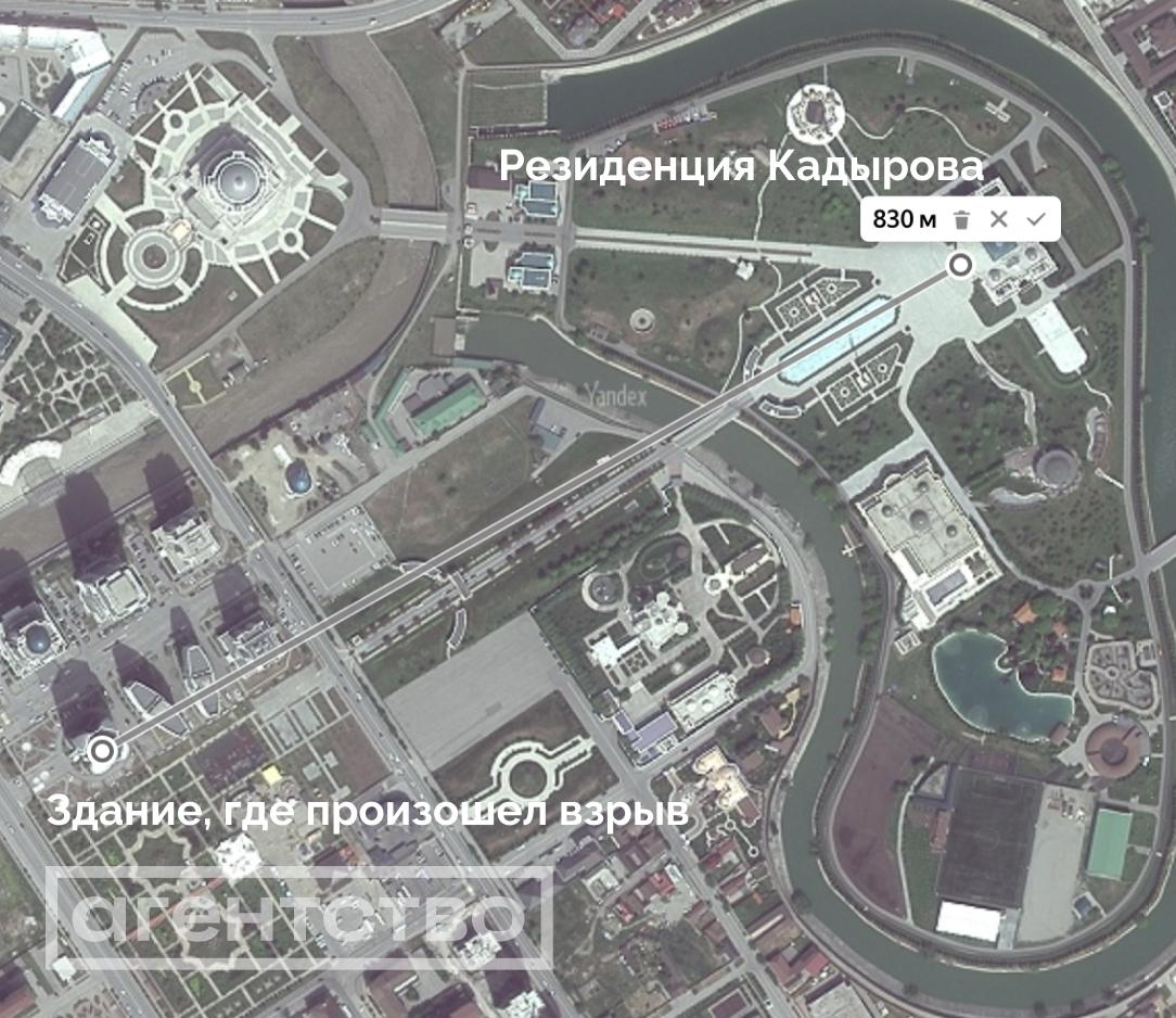 Башта, в яку потрапив дрон, розташована за 800 метрів від резиденції Рамзана Кадирова, в ній розміщені офіси одразу кількох органів влади,