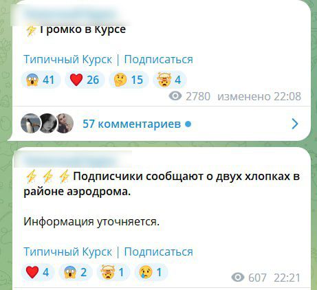 Росіяни обговорюють вибухи у Курську / Скриншоти з місцевих телеграм-каналів