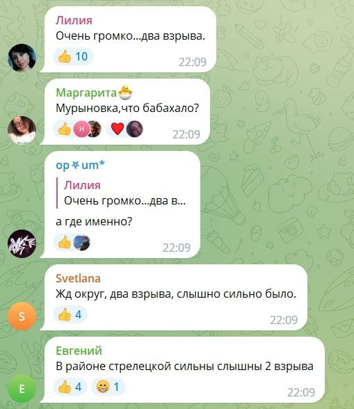 Одразу після вибухів місцеві жителі кинулись до соцмереж, щоб обговорити що та коли спостерігали. Так, уже о 22:09 появилось перше повідомлення щодо двох вибухів у російському місті. За їхніми даними їх чули у районах: