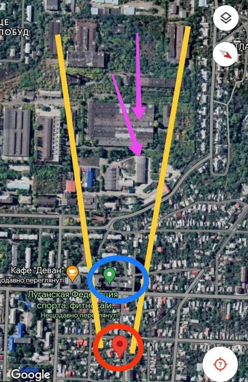 Журналісти видання "Донбас. Реалії" оприлюднили геолокація місця прильоту. Цьому посприяли відео очевидців, які було з провулка Базисний та вулиці Челюскінців.