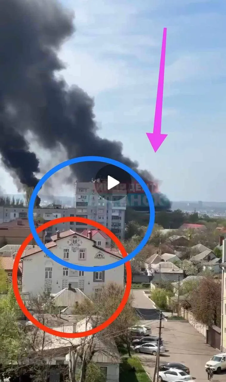 Місцеві телеграм-канали публікували відео вибухів і чорним димом над містом. На кадрах було чути детонацію боєприпасів.