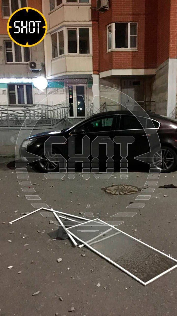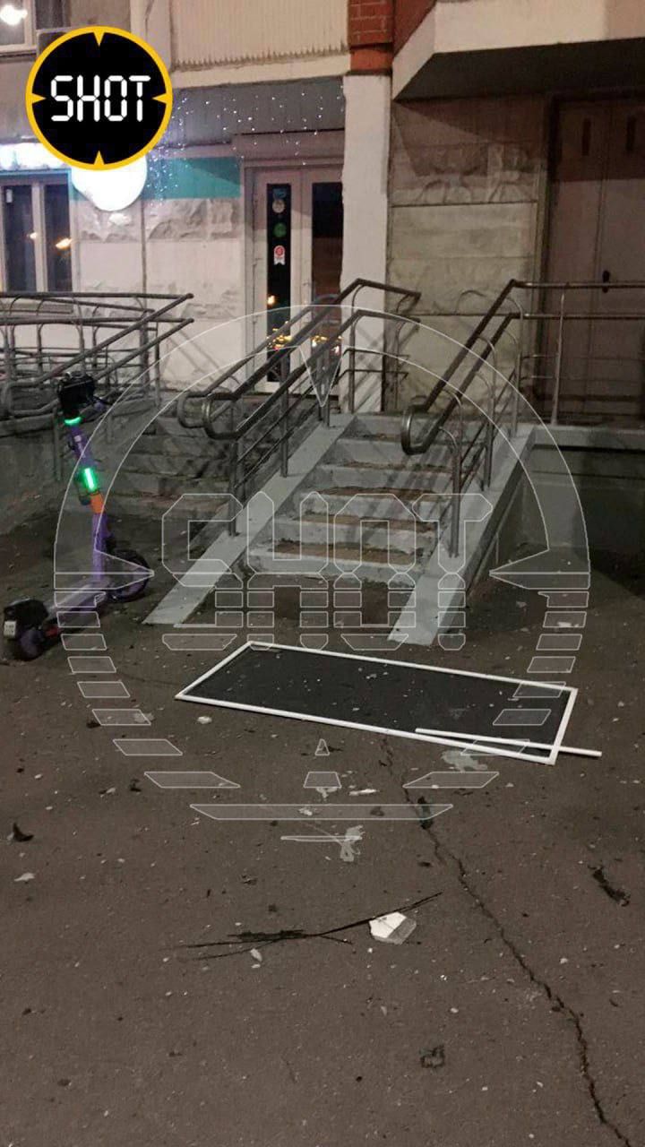 На знімках можна побачити, що з вікон повибивало москітні сітки. Також очевидці зафільмували невідомий шматок металу, схожий на частину безпілотника.