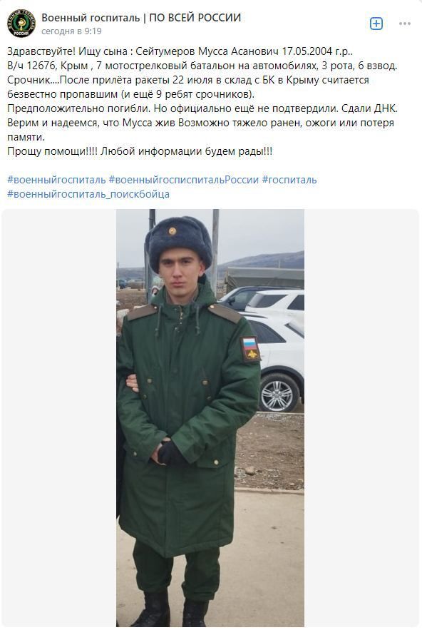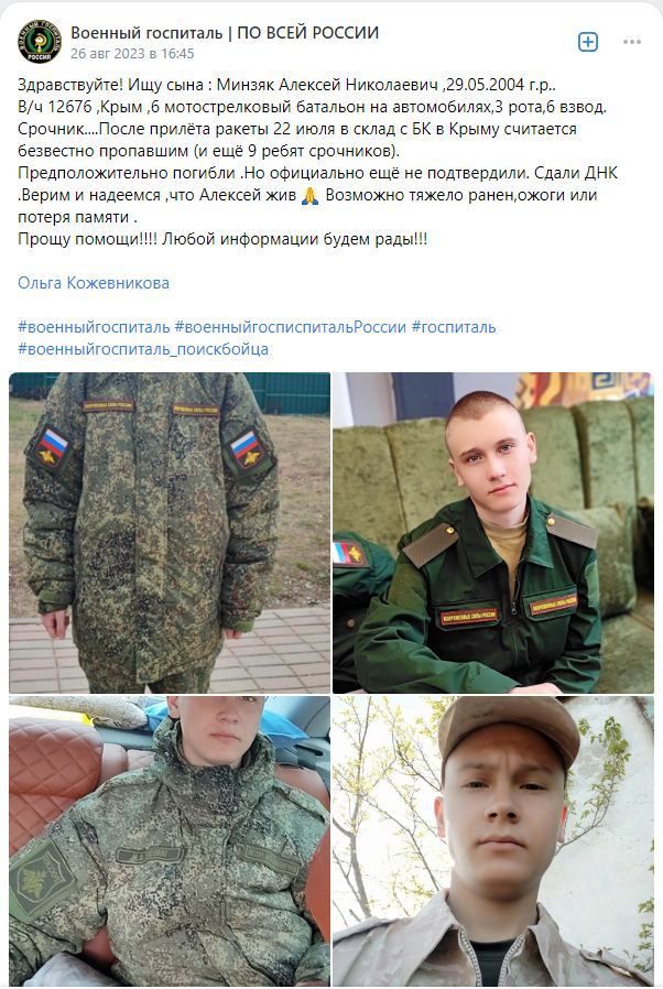 На початку вересня стало відомо, що слова Аксьонова є неправдою. Адже родичі 10 російських строковиків почали їх шукати через ворожі соцмережі. Мати одного зі зниклих солдатів армії країни-агресорки заявила, що навіть відвідувала місце вибуху, однак жодної інформації не отримала.