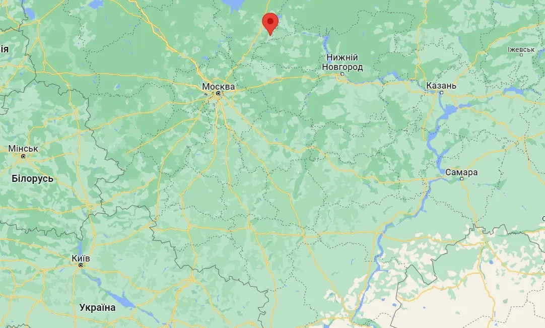 Де розташовується склад російського Міноборони, на якому виникла пожежа / Скриншот Google Maps