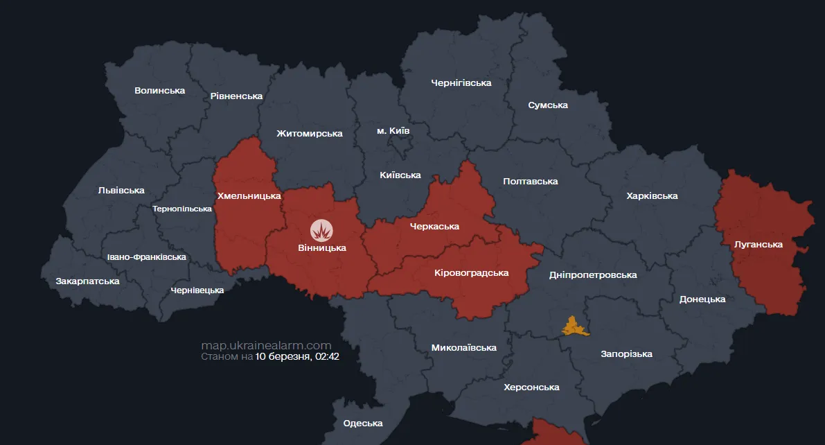 Орієнтовно о 00:36 у Вінницькій області пролунало сповіщення повітряної тривоги. Місцеві телеграм-канали повідомляли про вибухи в області.