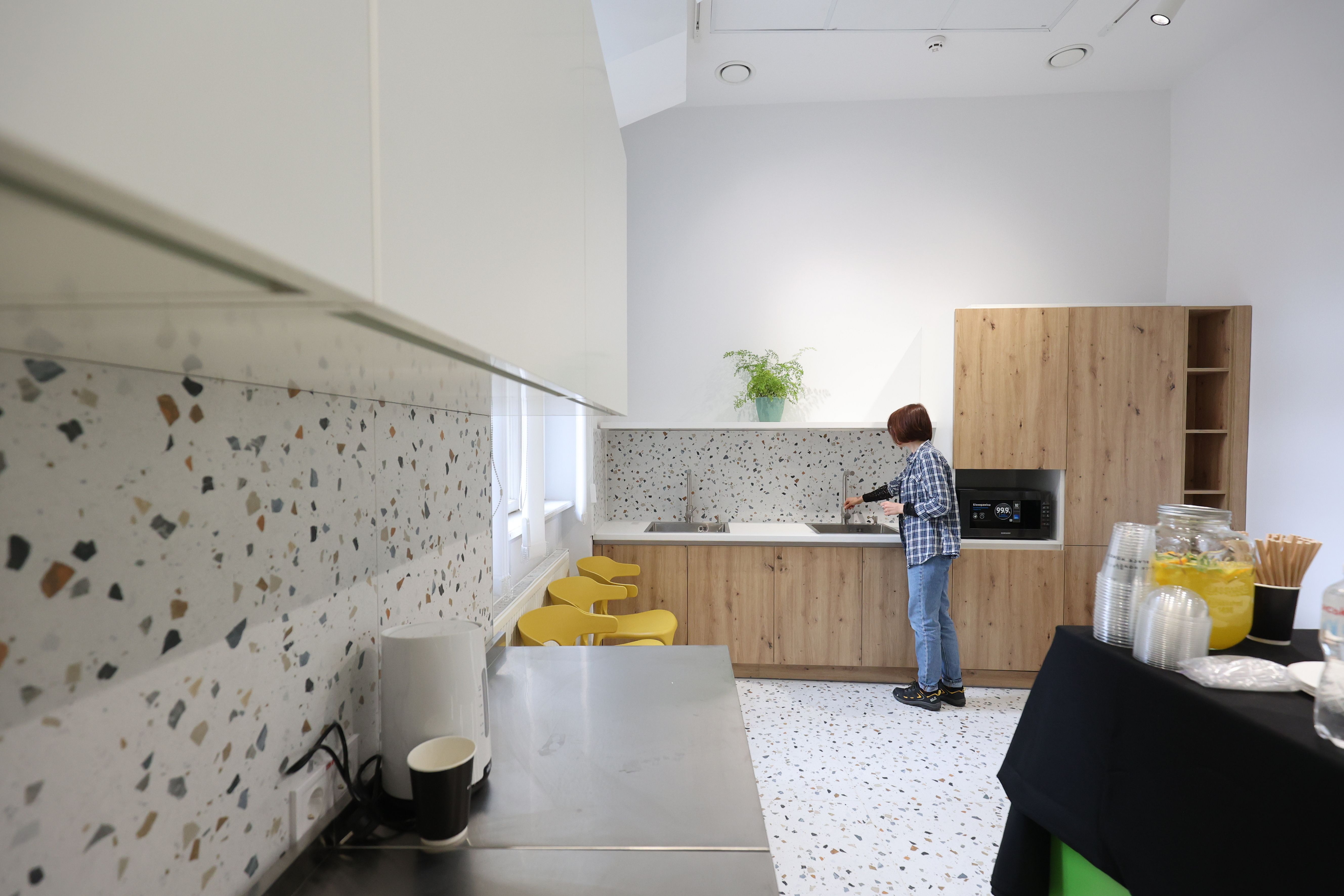 - комфортний коворкінг із зонуванням для колективної та індивідуальної роботи,
