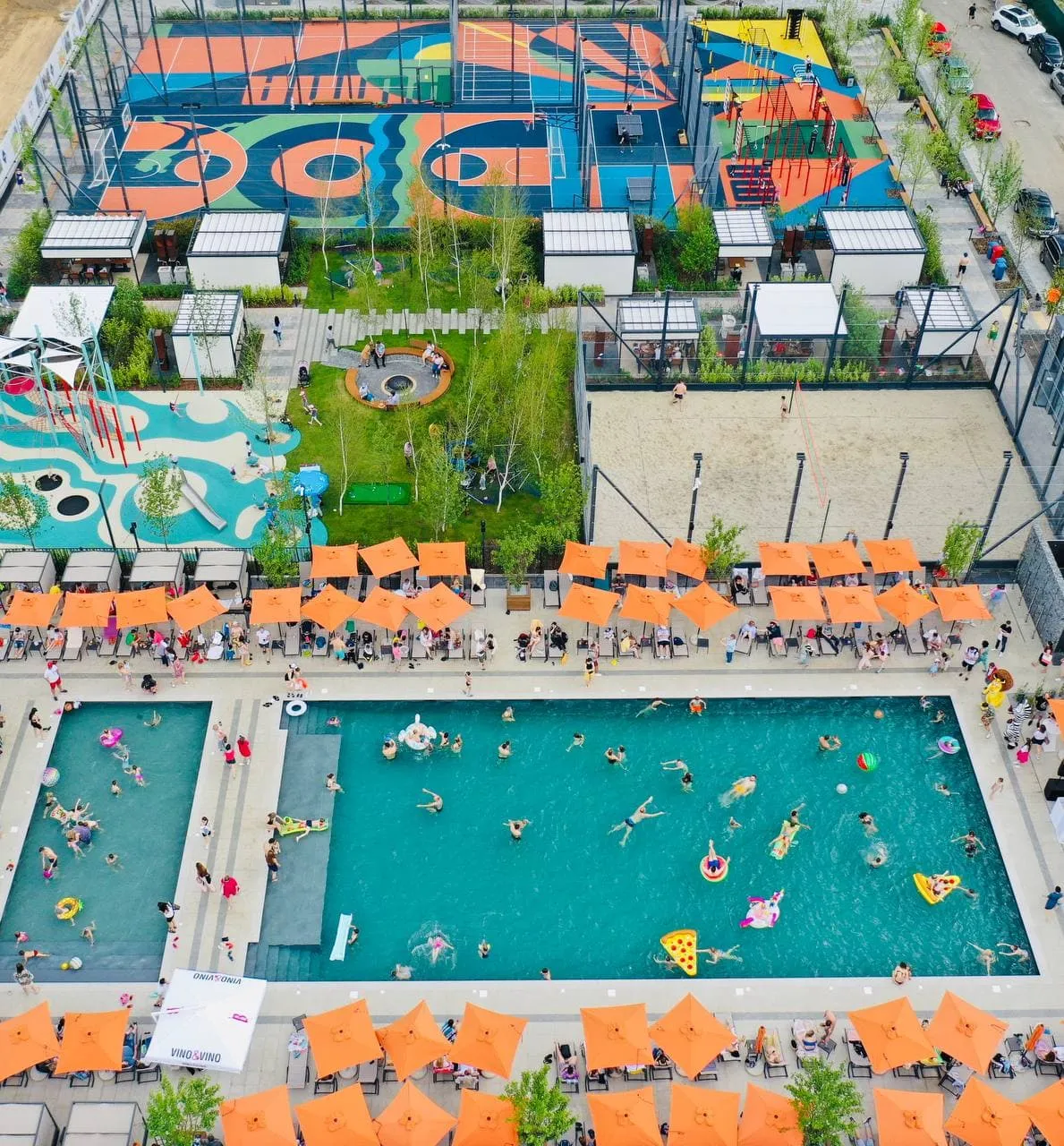 Пляжний комплекс став частиною великої рекреаційної зони живого кварталу, до складу якої входять: спортивний майданчик, який було створено в колаборації із глобальним спортивним брендом PUMA, зона для міні-футболу та баскетболу, затишна та комфортна bbq зона, галявина з гамаками, де можна почитати книжку та перепочити, зона для пляжного волейболу та яскравий і безпечний дитячий майданчик із гумовим покриттям.