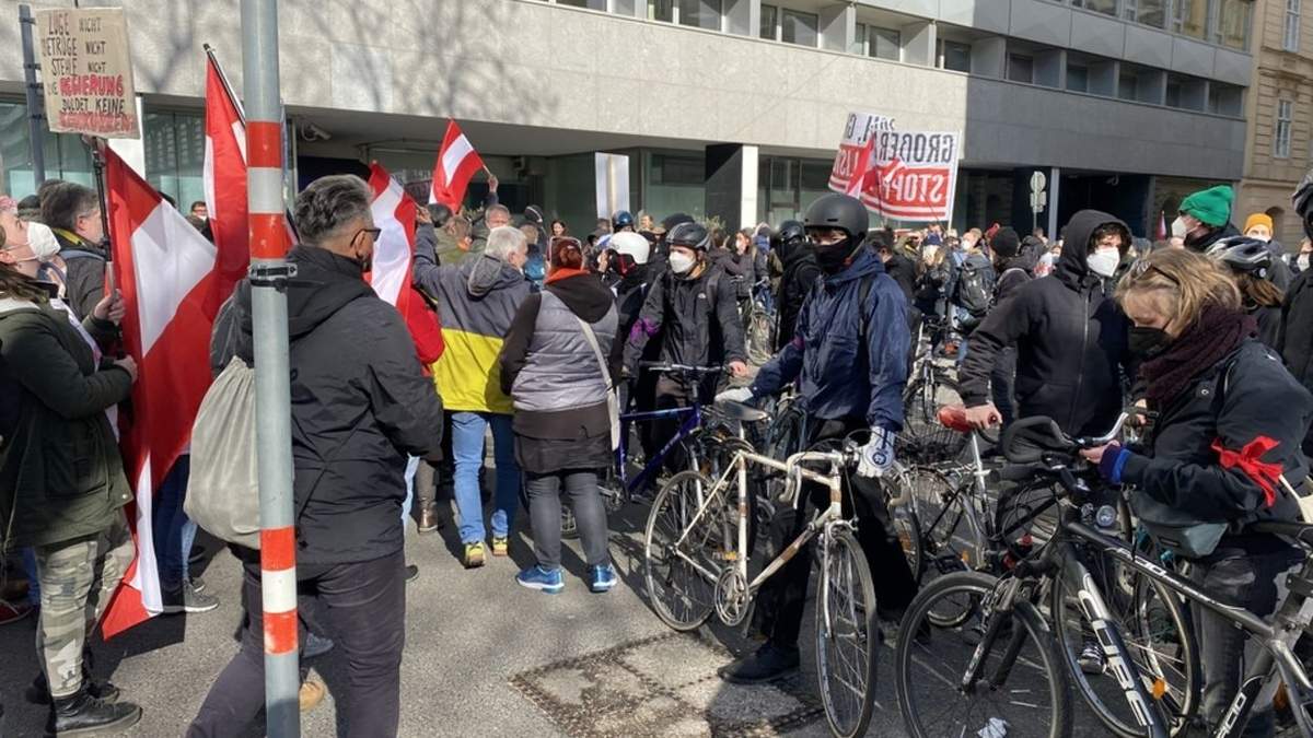 - Тим часом австрійці активно протестують проти карантину. Під час мітингів вони не носять масок та не дотримуються епідеміологічних правил.
