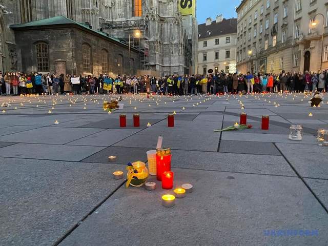 Небайдужі люди прийшли на площу Стефана (Stephansplatz – 24 канал) ввечері 10 квітня. Вони вшанували українців, які загинули внаслідок вторгнення Росії.