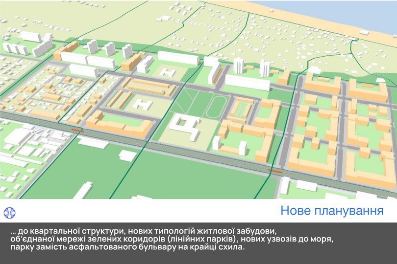Після перенесення порту головним напрямком розвитку міста стане прибережна смуга вздовж моря та територія біля Приморського парку. Історичний центр міста спускається до моря через Слобідку.