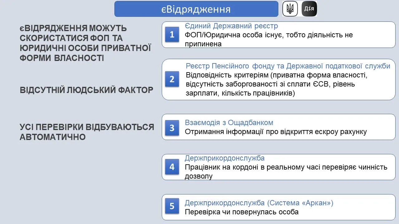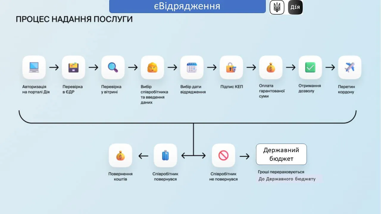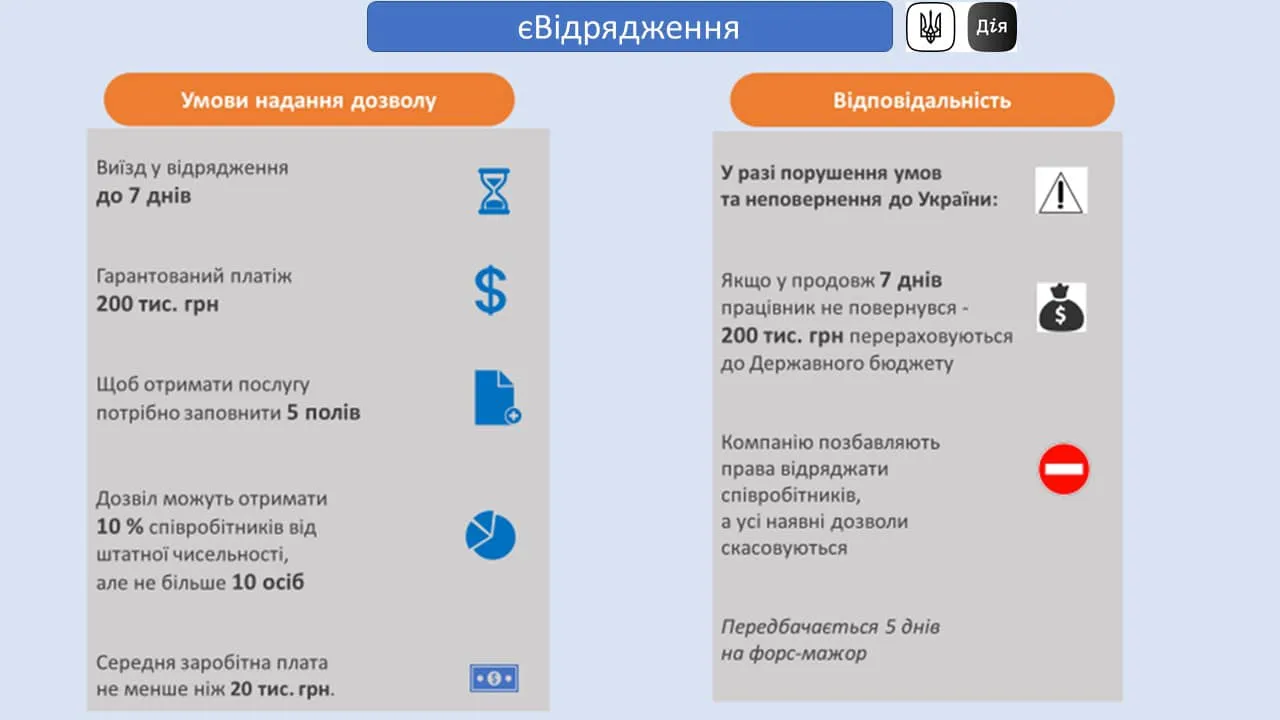 Повідомляється, що попередньо підприємець повинен внести 200 тисяч гривень застави на власний ескроу рахунок в Ощадбанку. За словами міністерки, ці гроші повернуть після того, як особа, яка була у відрядженні, повернеться до України.