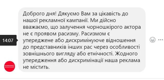 "Ми дійсно вважаємо, що використання чорношкірого актора не є проявом расизму", – заявили в "Ельдорадо" і додали, що "жодного упередження або дискримінації наша реклама не містить".