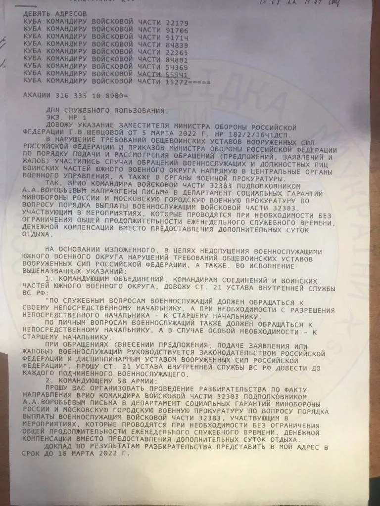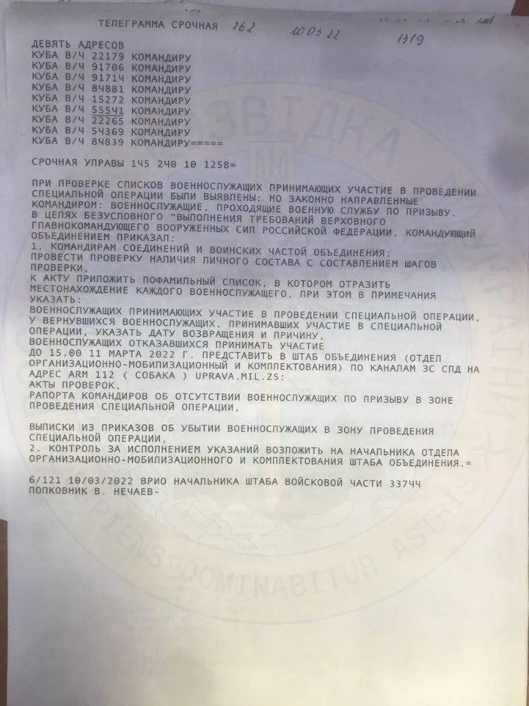 Також із документів випливає, що при перевірці учасників російсько-української війни виявили строковиків. Їх незаконно відправили в Україну. Утім, документ не містить вказівок про те, як повернути солдатів додому.