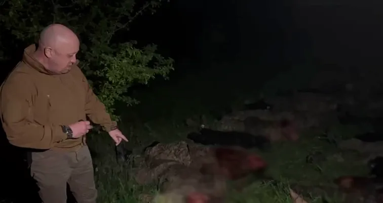 Шойгу, Герасимов, де боєприпаси? (с) / Скриншот із відео Пригожина, на якому він показував купу мертвих найманців-зеків