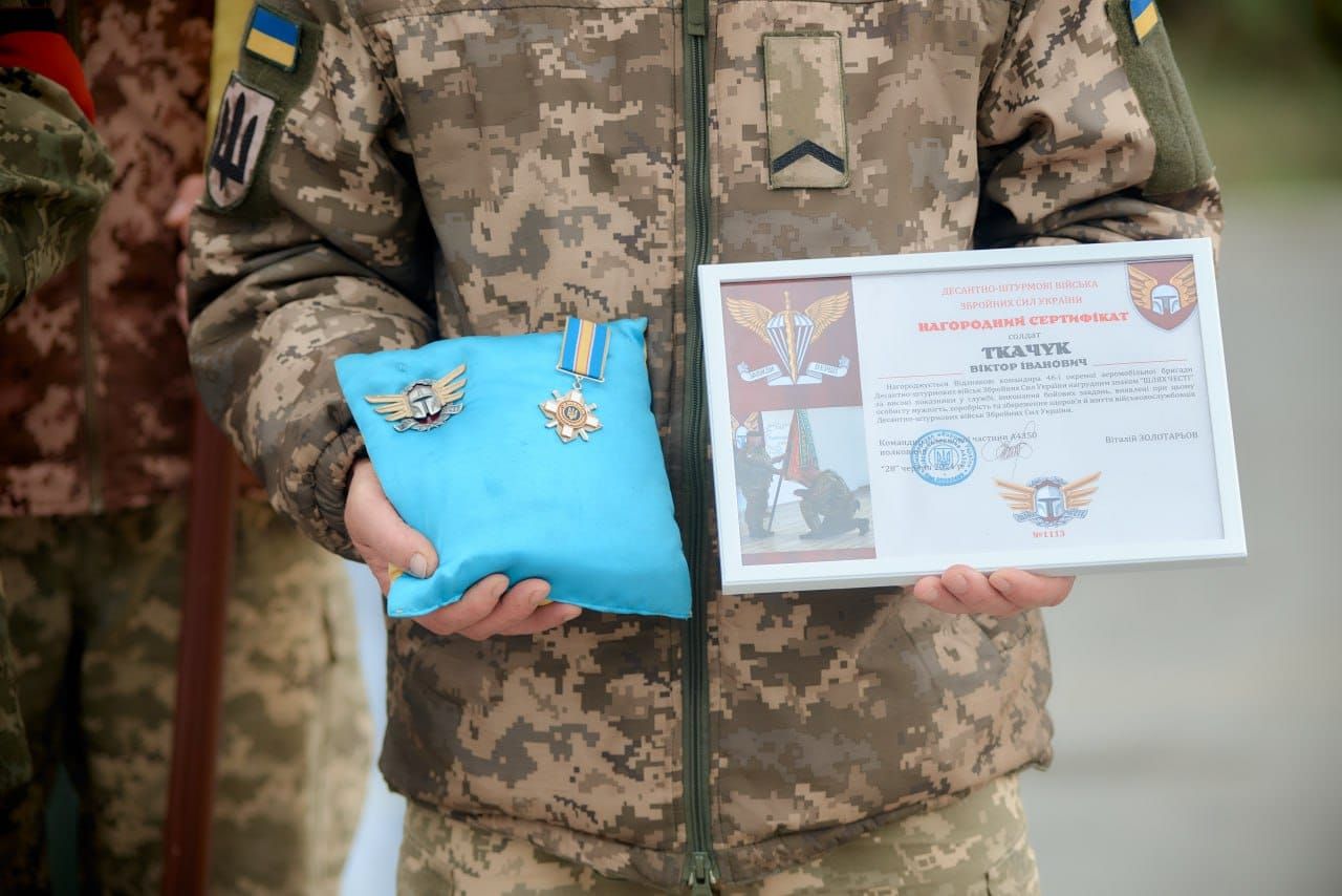 Віктор Іванович Ткачук був у складі 46-ї окремої аеромобільної бригади. У червні командир відзначив його нагрудним знаком "Шлях честі" за високі показники в службі, виконання бойових завдань, проявлені при цьому особисту мужність і хоробрість, а також збереження здоров’я й життя військовослужбовців.