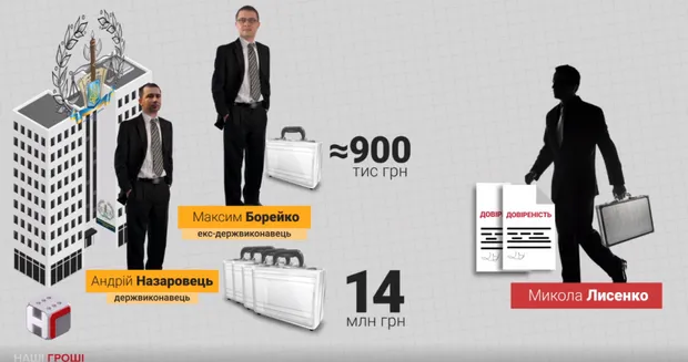 Максим Борейко претендував на винагороду менше мільйона. Довіреність він видав в один день з Назаровцем, однак за тиждень, 15 грудня, майже одночасно з фактичним отриманням своєї винагороди Максим Борейко через іншого нотаріуса анулював довіреність на ім’я Миколи Лисенка.