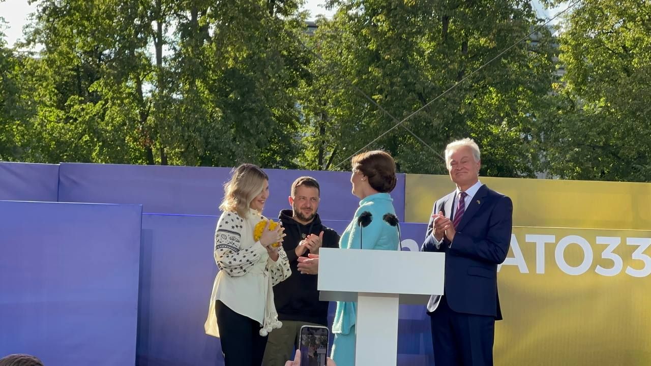 Володимир Зеленський на центральній площі у Вільнюсі/ Фото Софії Назаренко