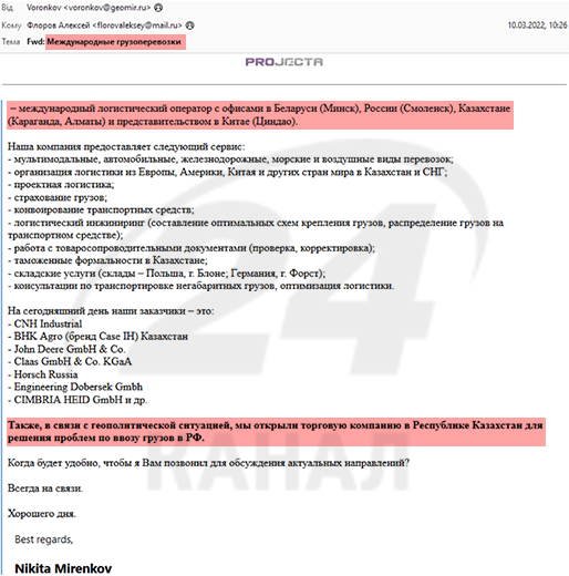 При цьому на пошту Флорову регулярно пишуть як рашистські представники, що реалізують західну продукцію, так і співробітники турецьких, китайських, італійських, австрійських та інших компаній з пропозиціями співробітництва у перевезенні потрібних деталей.