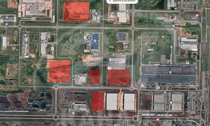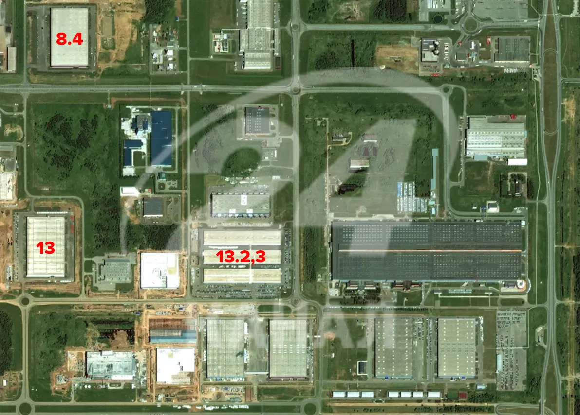 Згодом росіяни побудували 13.2,3. Їх можна легко впізнати, порівнявши будівлю з проєктом на сайті "Алабуга Девелопмент".
