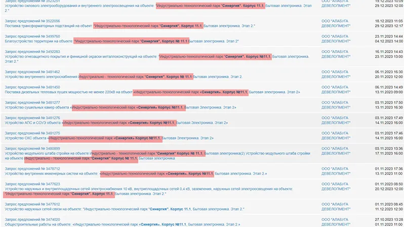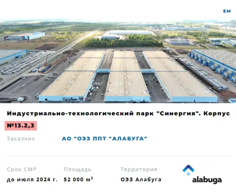 Про споруду 11.1, яку почали будувати на території особливої економічної зони наприкінці березня 2024, немєа жодних згадок у переліку проєктів "Алабуги". Проте є в архіві проведених тендерів.