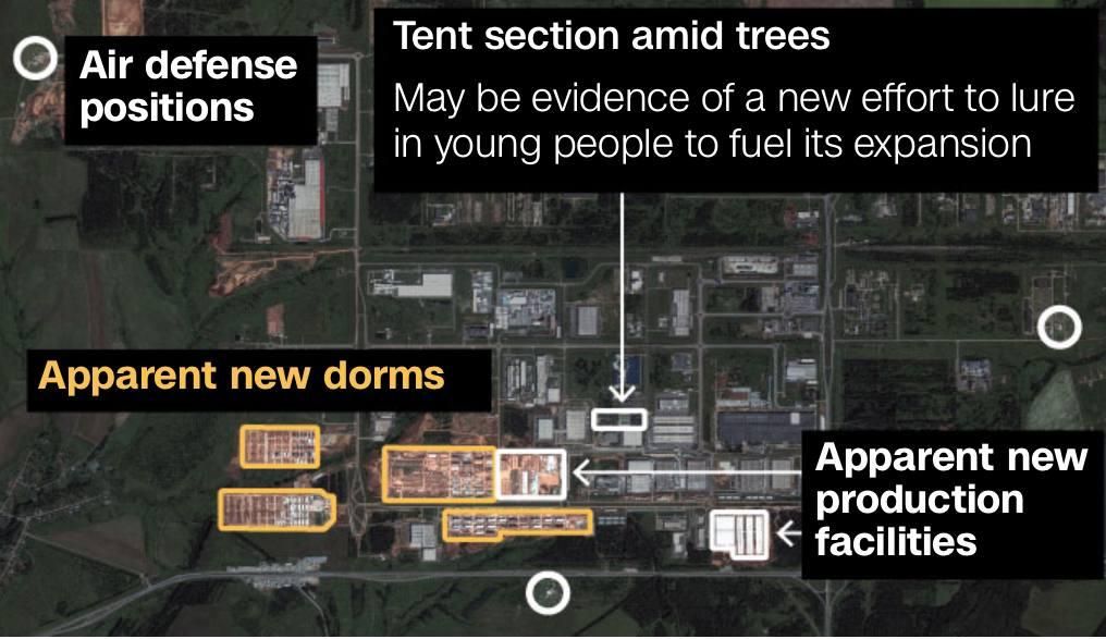 Аналітики, які досліджували супутникові знімки, підрахували: після завершення будівництва нових житлових корпусів підприємство зможе розмістити до 40 тисяч працівників. Це дозволить суттєво збільшити виробництво безпілотників.