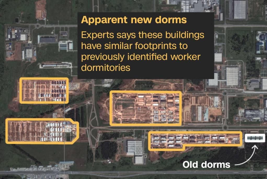 За словами журналістів, на території вже активно зводять десятки нових будівель, серед яких, на думку експертів, – нові гуртожитки та виробничі приміщення.