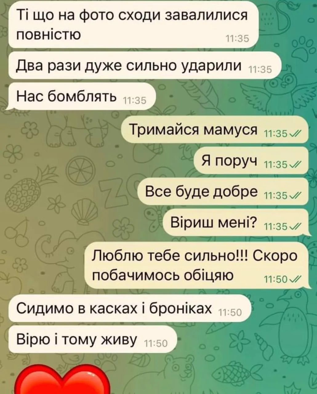 - – Тримайся, мамуся. Я поруч. Все буде добре. Віриш мені? Люблю тебе сильно!!! Скоро побачимося, обіцяю.