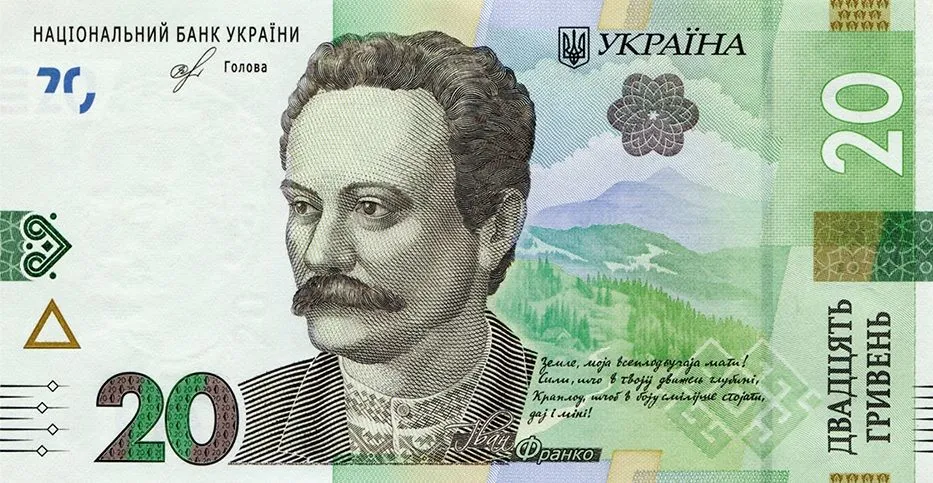 На купюрі у 20 гривень Франко зображений у вишиванці