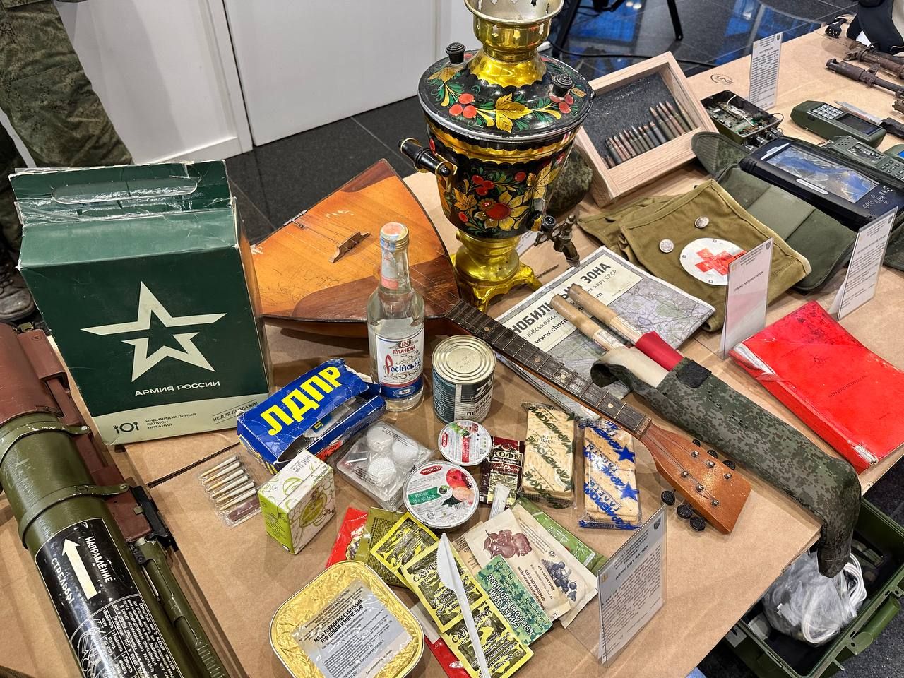 На виставці представили й вміст російського сухого пайка, горілку, балалайку та самовар — все, з чим окупанти прийшли на українську землю.