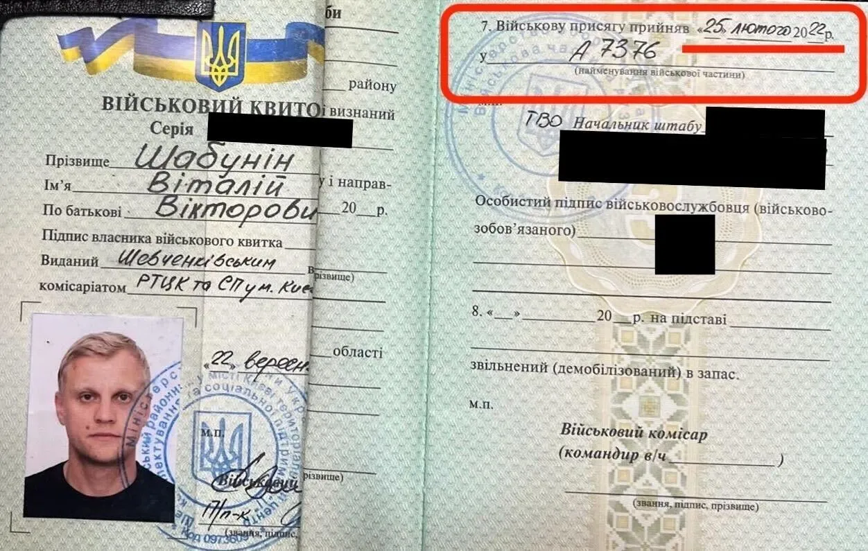 Військовий квиток Віталія Шабуніна / Фото Віталія Шабуніна
