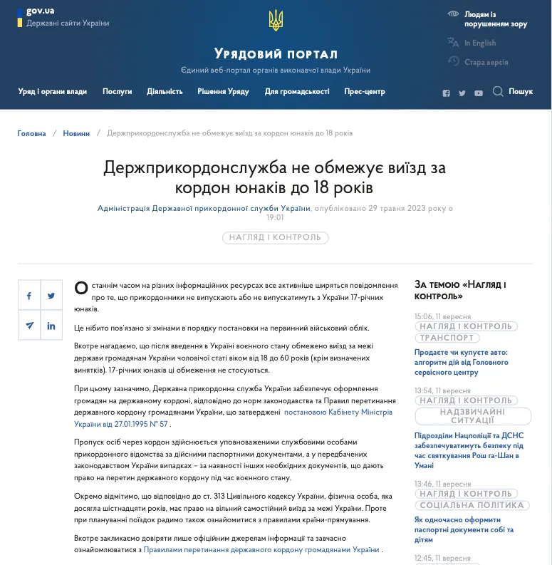 Щоб усіх заспокоїти Держприкордонслужба 29 травня 2023 виступила з офіційною заявою, якою підтвердила, що жодним чином не обмежує виїзд за кордон юнаків до 18 років.
