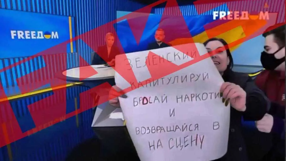 Фейк 32. "Жінка увірвалася в прямий ефір українського телеканалу…"