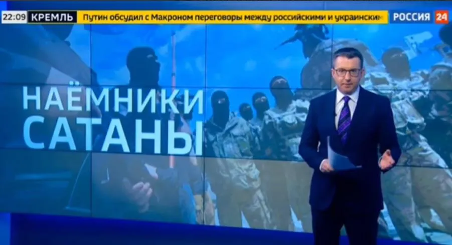 Американські сатаністи потягнулися в Київ. Це колишні спецназівці США, які поклоняються дияволу, – сказав дуже-дуже серйозно диктор "Росія 24". – У них навіть є свій прапор…