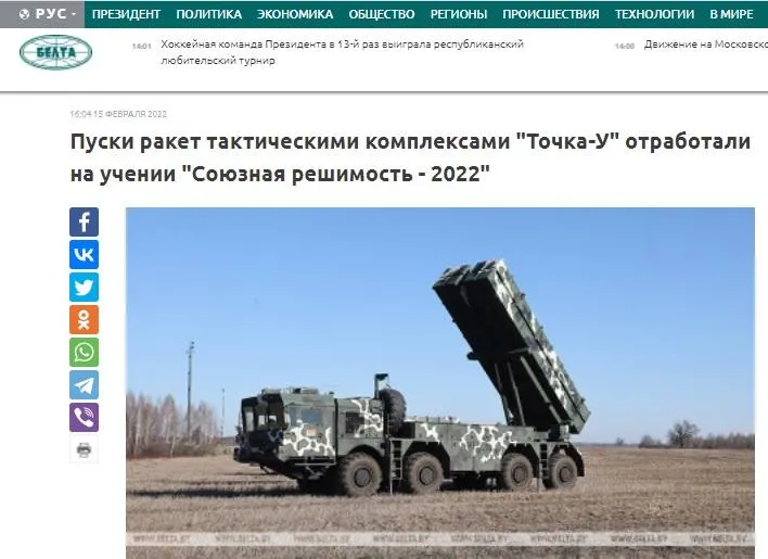 А ще раніше (у лютому) під час спільних навчань рф і білорусі "Союзная решимость-2022" медіа обох країн хвалилися, якими вдалими були ракетні тренування. Наприклад: "Пуски ракет тактическими комплексами "Точка-У" отработали на учении "Союзная решимость-2022". Тут автор згадує "Точку-У" неодноразово…